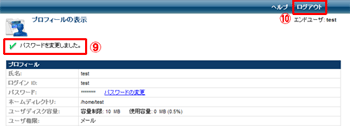 左図の画面のように、 H「パスワードを変更しました」と表示があるのを確認しましょう。 これで「パスワードの変更」はされました。 I左上の「ログアウト」ボタンをクリックしましょう |